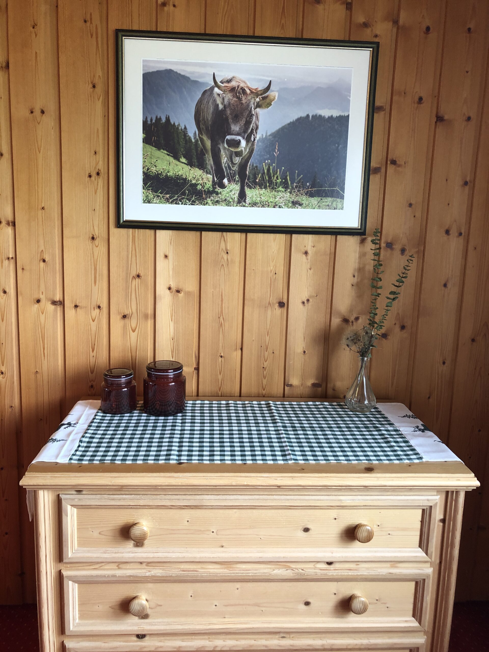 Das Zimmer im Erdgeschoss lässt Sie auf unsere wunderbaren Weiden Blicken, die zum Verweilen einladen.