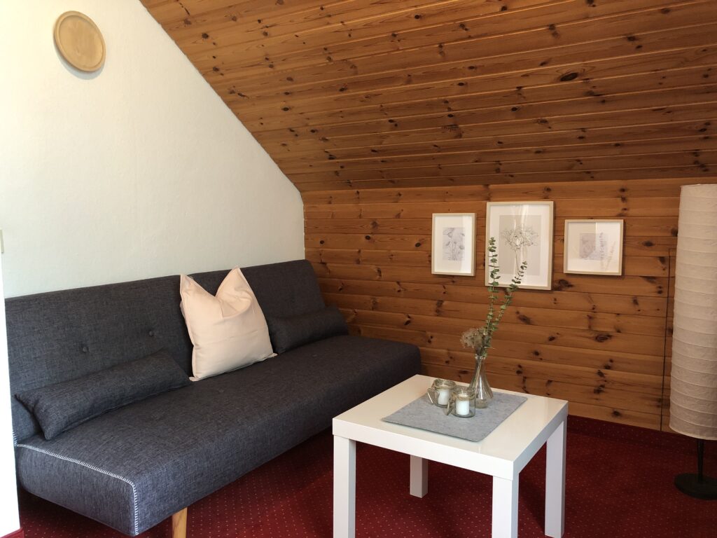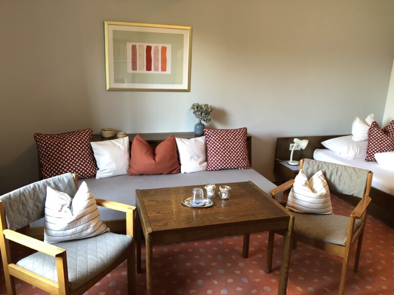 In diesem Zimmer befindet sich neben dem geräumigen Schlafzimmer ein separates Wohnzimmer und bietet somit Comfort und Gemütlichkeit für Ihren Aufenthalt in Bad Wörishofen.