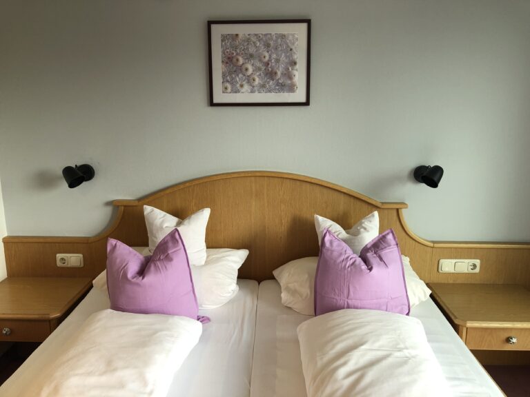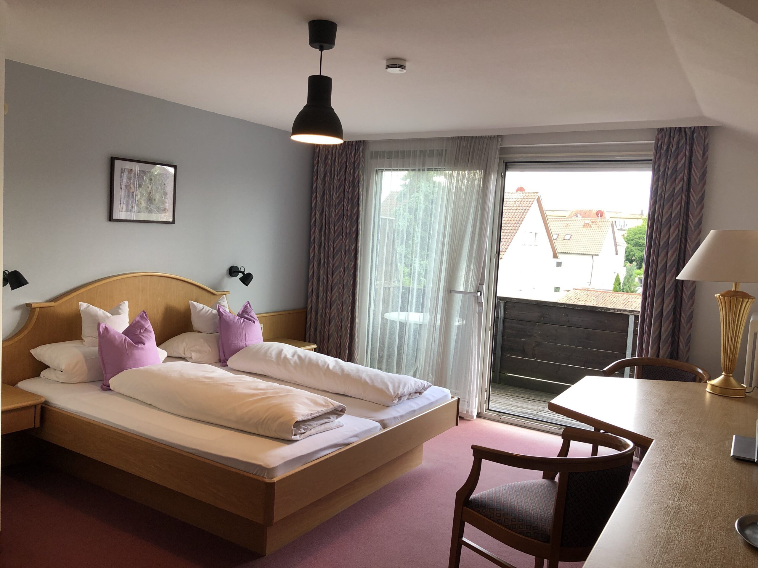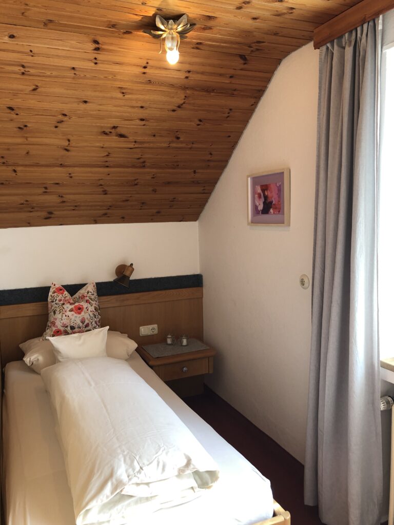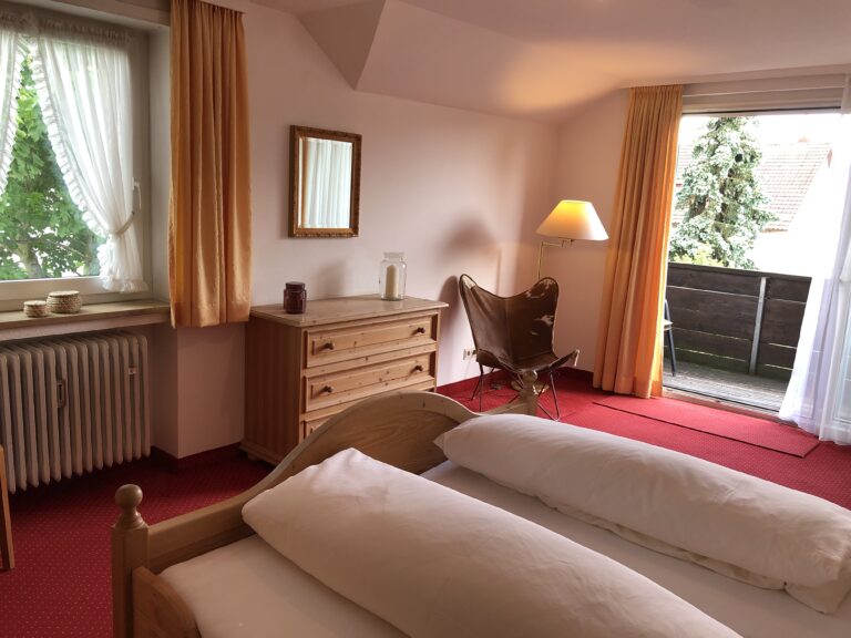 Unser Einzelzimmer bietet nach einem erlebnisreichen Tag einen großen Balkon mit Abendsonne und ein gemütliches Bett zum Entspannen und Abschalten.