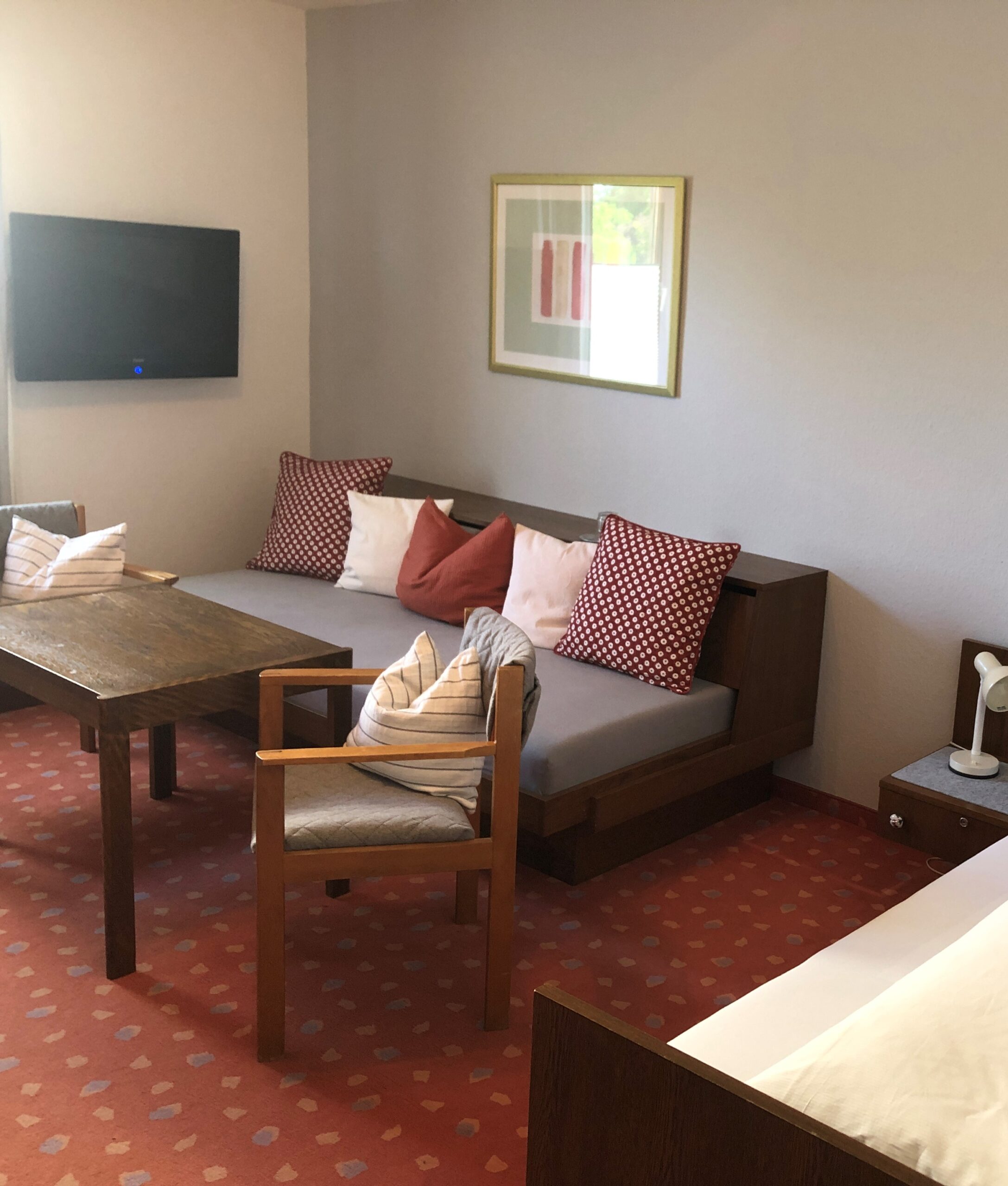 Das geräumige Einzelzimmer im Erdgeschoss bietet den nötigen Comfort, um sich zu entspannen und abzuschalten.
